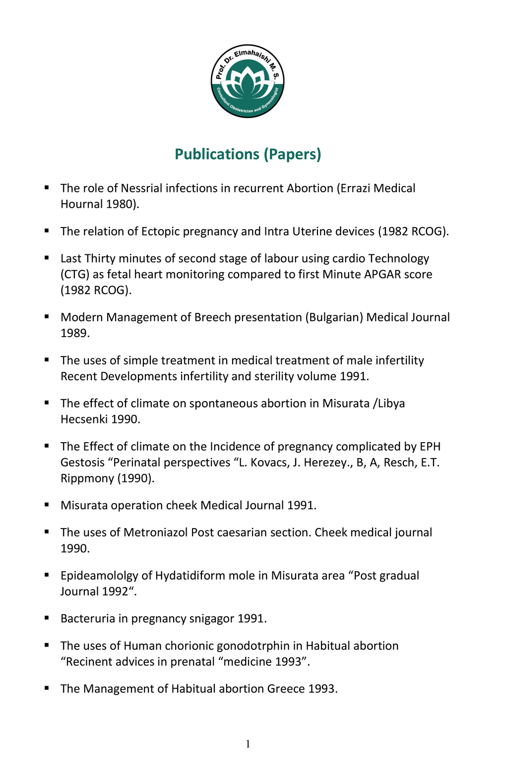 Profession: Consultant in Obst., Gyn. and Infertility Managment.